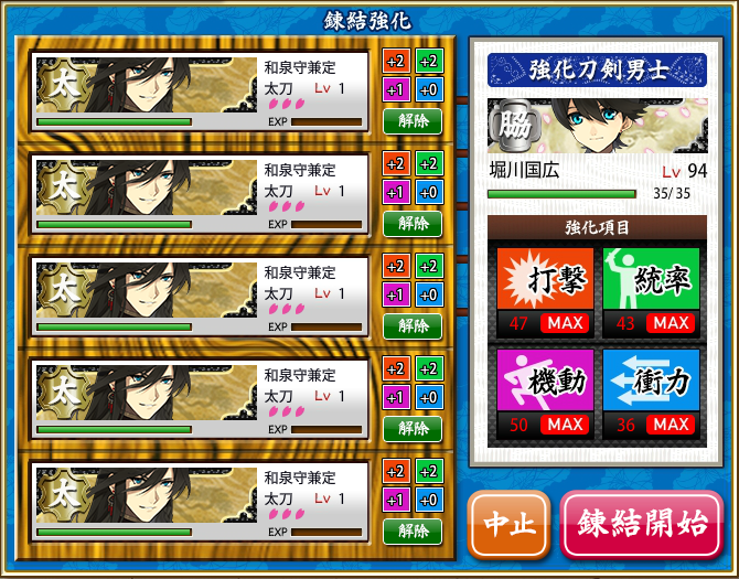 打刀のレベ上げをしたい。レベル差ェ・・・。