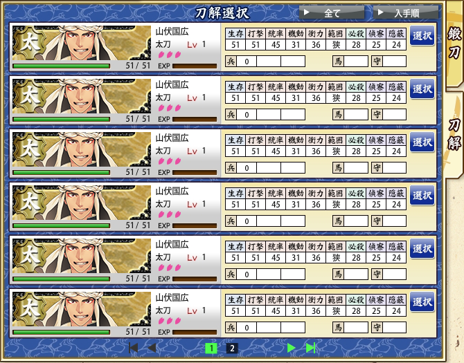 暇を持て余して全刀剣育成が順調です。