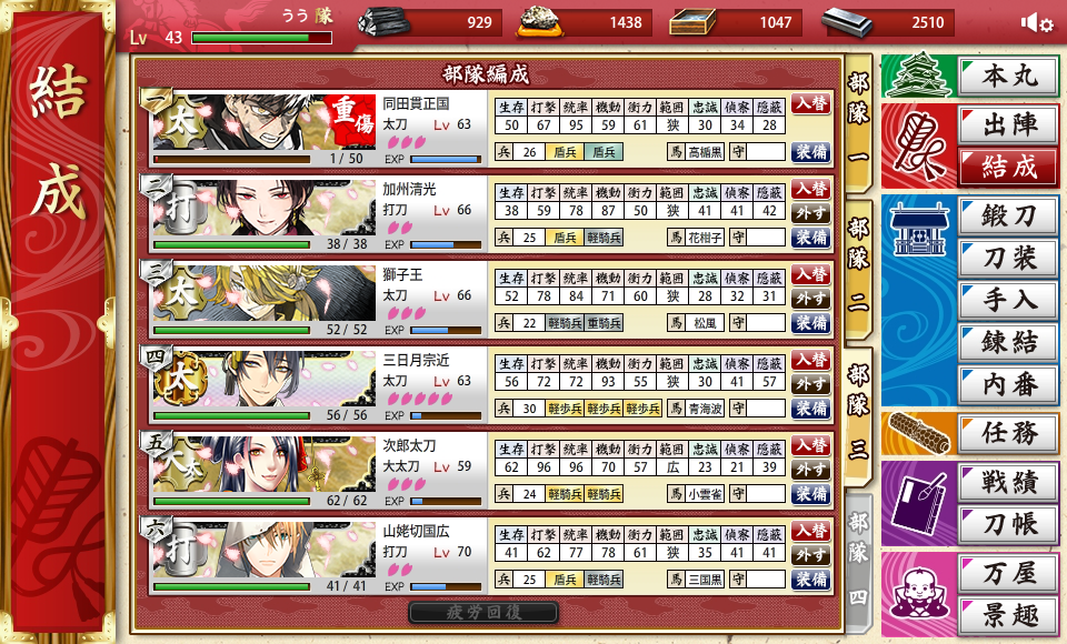 三日月さんの歩兵全然減ってなかったのは覚えてるよ。。